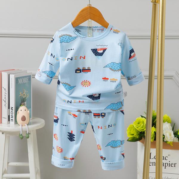 140cm Height Kids Pyjama Set Q Version Spring Cartoon Pajamas Set 5% Spandex Images |