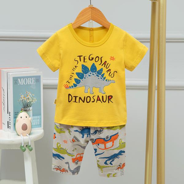 Blue Dinosaur Korean Childrens Plain Pyjamas Shorts breathable feeling for summer Images |